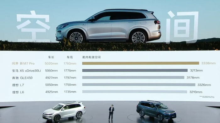 在开始介绍问界 M7 之前,余承东再次展现了他的坦率与自信,直接将问界新 M7 称为「20 万元级最好的 SUV」。在他眼里,问界 M7 的首要优势就是空间大。