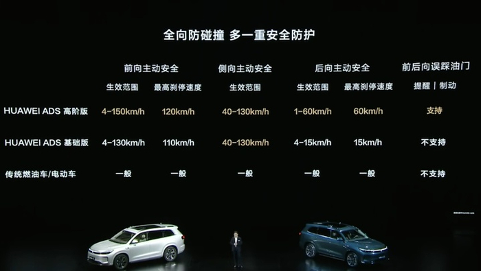 和高阶版相比,华为 ADS 基础版的前向、和后向主动安全能力都有一定的削减。