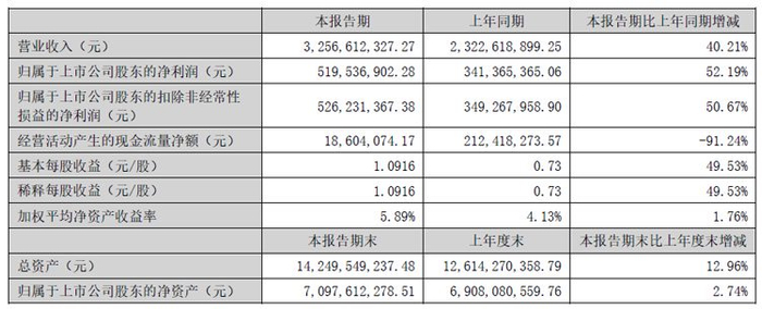 8月28日,江苏雅克科技股份有限公司发布2024年半年度报告。2024年上半年度,雅克科技实现营业收入325,661.23万元,与上年同期相比增长40.21%;实现营业利润和利润总额分别为67 ,174.09万元和66,995.37万元,分别比上年同期增长53.93%和53.94%;实现归属于上市公司股东的净利润为53,031.99万元,同比增长52.84%。2024年上半年,公司整体经营情况良好,业绩稳步增长。