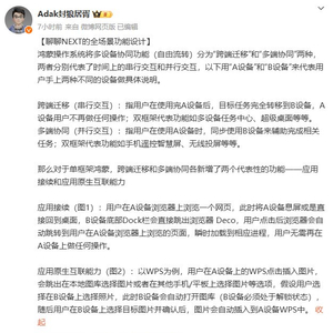 消息称华为鸿蒙 HarmonyOS NEXT 系统“自由流转”分跨端迁移、多端协同