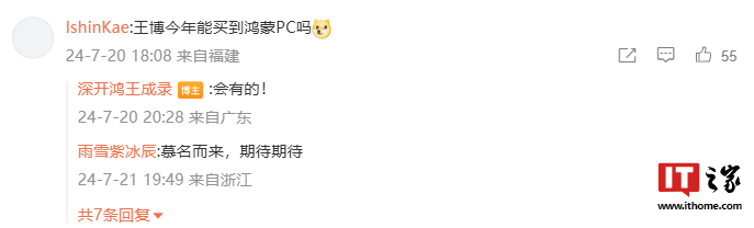 据此前报道,深圳开鸿数字产业发展有限公司 CEO 王成录曾多次表示鸿蒙 PC 版将至,今年 7 月,王成录在微博评论区中回复网友“今年能买到鸿蒙 PC 吗?”的留言,称“会有的”。