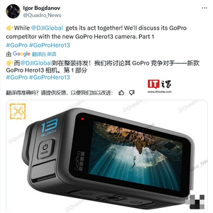 IT之家 8 月 30 日消息,消息源 @Quadro_News 昨日在 X 平台发布推文,分享了多张 GoPro Hero 13 Black 运动相机的照片,并透露了一些规格和功能细节。