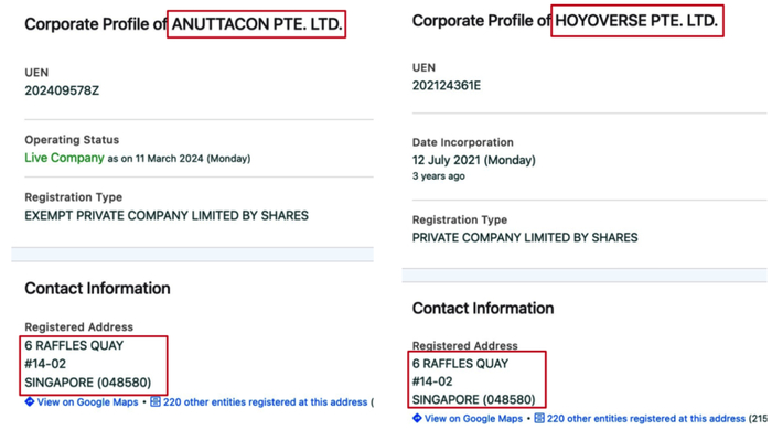 有列文虎克网友发现,Anuttacon 的注册地与米哈游新加坡总部 Hoyoverse 在同一个地址。