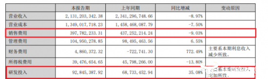 而此次中期报告中,小熊电器的销售费用为3.97亿元,同比下降9.03%;而研发费用为9284.5万元,同比上升35.08%。