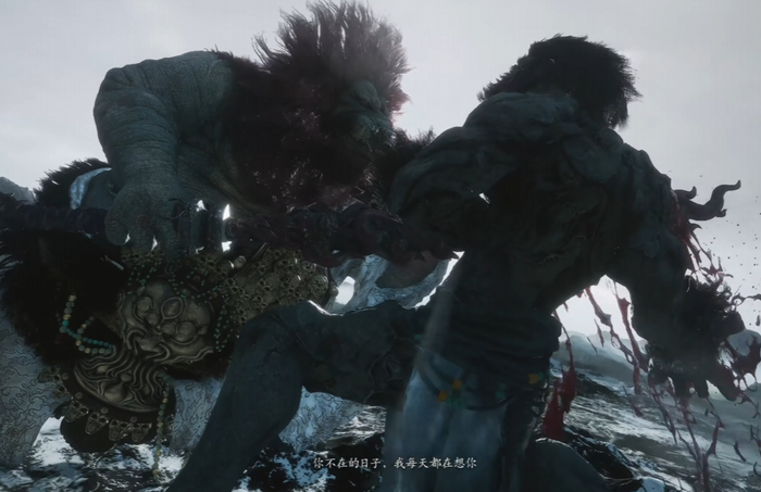 且不谈这告白一样的对白写出来会不会造成误解,细心的玩家应该也注意到了法天象地之战的文本差异,当天命人化身青穹之后,二郎神完全舍弃了“他”这一人称代词,字里行间全是对“你”的念念不忘与惺惺相惜: