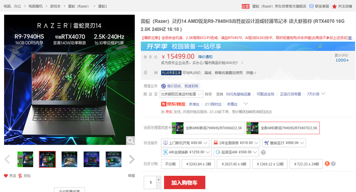 产品配置:锐龙9 7940HS/RTX 4070/16GB/1TB/2.5K 240Hz100%DCI-P3电竞屏