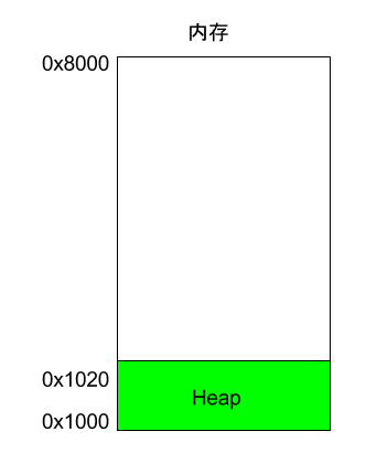 程序运行过程中,对于动态的内存占用请求(比如新建对象,或者使用malloc命令),系统就会从预先分配好的那段内存之中,划出一部分给用户,具体规则是从起始地址开始划分(实际上,起始地址会有一段静态数据,这里忽略)。