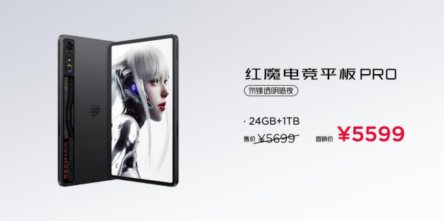 目前,红魔电竞平板Pro 12+256G版本,售价3999元,16+512G版本,售价4499元,还有超大内存24G+1T版本,售价5599元,享6期免息、1年碎屏保以及1年延保等福利,同样丰富配件已开启预售 ,另外京东平台先人一步已经抢先开售,9月8号0点转为预售,9月11日上午10:00全平台正式开售。