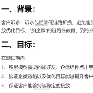 在这份文档中见实也看到了部分补充信息。目前企微链路仅在「搜索场域」开放,「全站智投不可创建」,且企微链路需与企微侧「获客助手」功能对接,品牌在开通该项功能之前需要先开通获客助手。