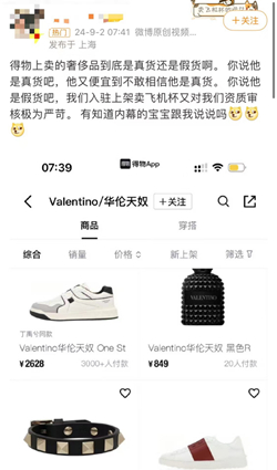 近日,有微博博主发帖询问,得物的产品是否为正品?在评论区中仍然可以看到,大部分消费者认为得物的产品真假参半。