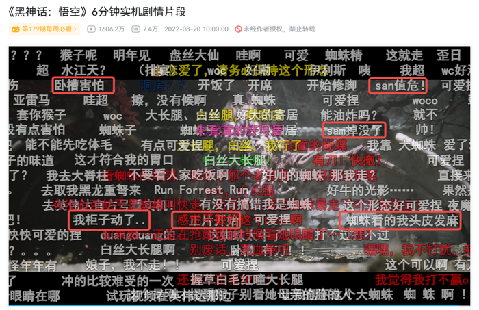 战胜紫蛛儿之后的演出,更是到了头皮发麻的顶点——铺天盖地的蜘蛛海从四面涌来,初见的压迫感拉满。各路主播打这关的Reaction,毫不意外成了新的电子榨菜,从尖叫到逃跑应有尽有。
