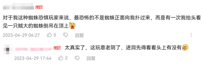 人类害怕蜘蛛,多少还是出于本能反应,且不提现实中的蜘蛛,游戏中的蜘蛛往往属于“魔改”,制作组费尽心思设计,本意就是为了吓人,玩家感到害怕再正常不过。