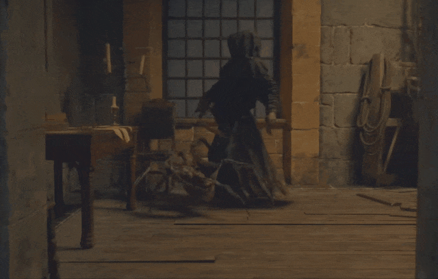 魂类游戏也爱用蜘蛛做文章,《黑暗之魂2》到了二周目,玩家以为自己能横着走,游戏还要安排一段蜘蛛突脸的环节教育你。