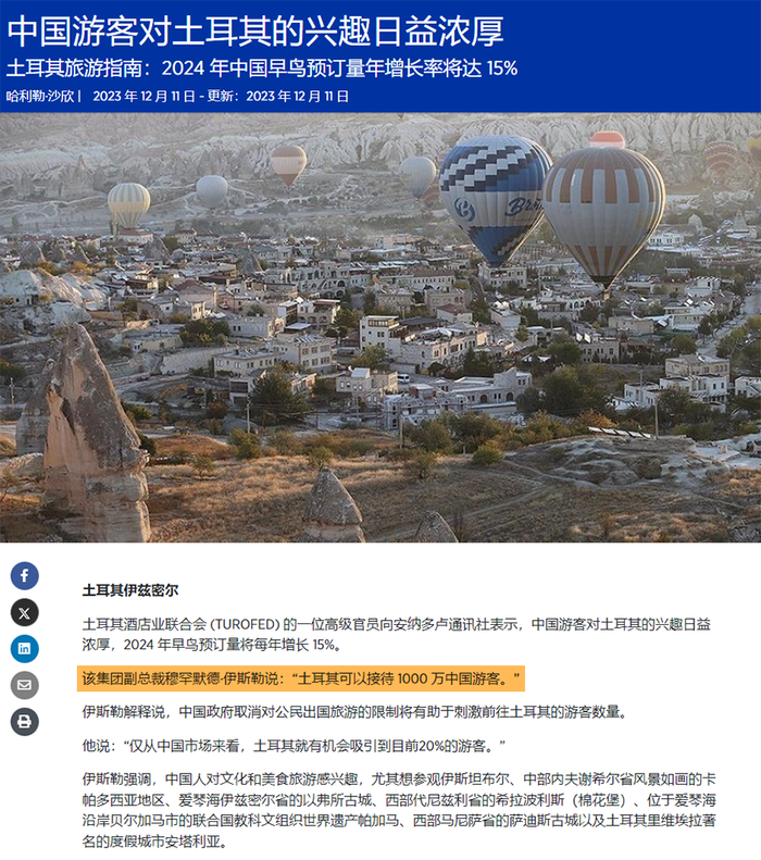 而在今年上半年,有消息称土耳其中国游客数量已经达到了 18.7 万人次。下半年是土耳其传统意义上的旅游旺季,所以很可能会恢复到疫情前的最高数字,而且还有巨大潜力。