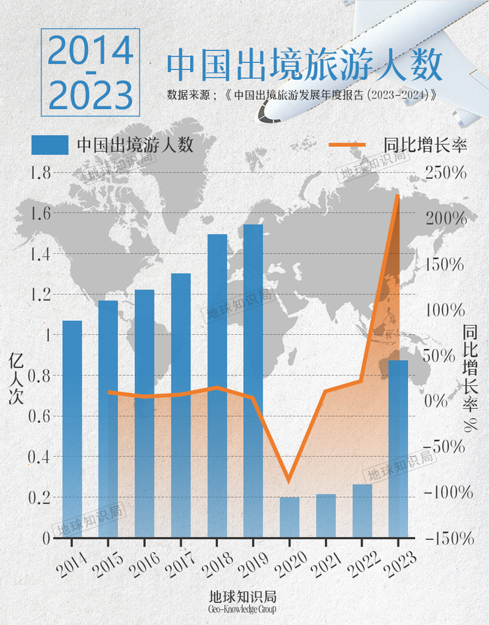 中国人对于出国旅游的需求是庞大的,根据中国旅游研究院发布的《中国出境旅游发展年度报告 (2023-2024)》,2023 年中国人出境旅游数量超过了 8700 万人次,预计今年出境游的数量能达到 1.3 亿人次。