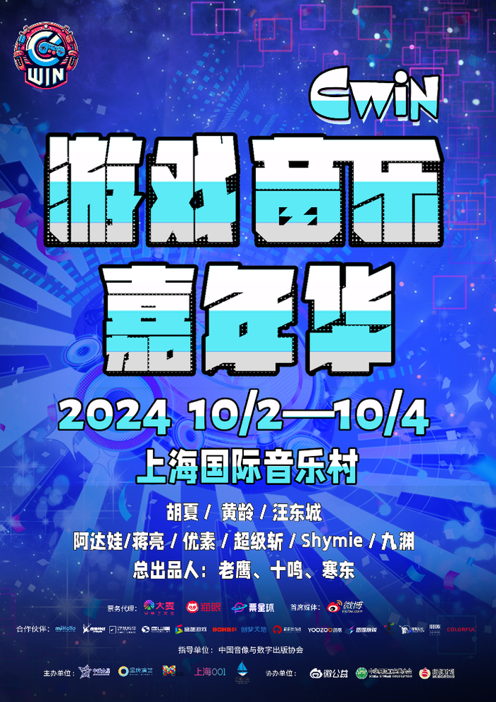 由中国音像与数字出版协会指导, “Cwin游戏音乐嘉年华”将于2024年10月2日至10月4日在上海国际音乐村正式举办,将于2024年9月20日11:08在大麦网、猫眼、票星球开启预售,观众可在以上售票平台购买。