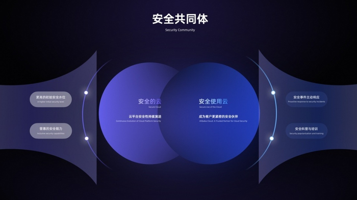 以云产品安全配置为例,阿里云在设计和开发云产品时会严格保证安全性,并在云服务中内嵌客户可自行配置的安全能力。客户在使用云服务时,则需要根据上云数据情况、系统的业务场景自行完成安全配置。在安全共同体理念的引导下,阿里云将在客户使用云产品之初预设更多初始的安全配置与风险提示,使客户在更安全的环境中构建业务,从而避免很多因疏忽或不当操作引发的安全风险。