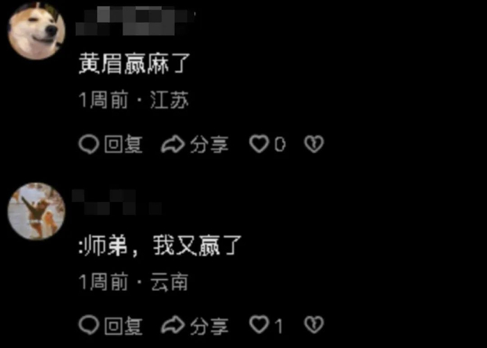 但在游戏圈外更泛化的评论区,则会发现黄眉的金句出现频率更高,像是“这一回,我又赢了,金蝉子”,还有“黄眉真的是赢了”“眉又赢”等等缩写变体。