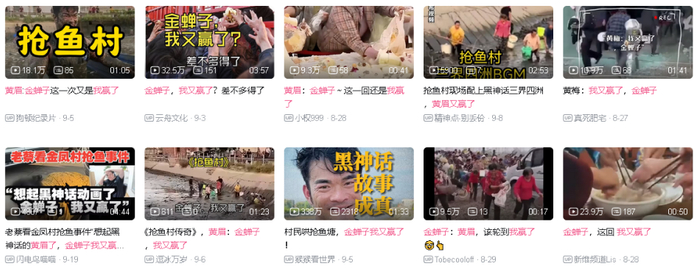 有些网友或有意或无意,继承了黄眉的钓鱼逻辑。最近的很多网络视频使用了类似的模板,画面是各种不文明行为,BGM用《黑神话:悟空》第三章结尾动画的《屁》,厚重的鼓点叠加“三界四洲”的歌词,情绪瞬间起来了。
