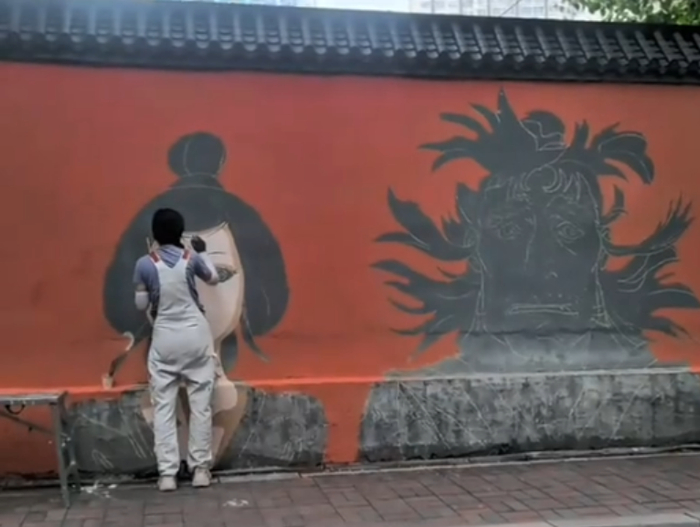 位于河北石家庄的素素,自称“腰肌劳损女壁画工作者”,她绘制的《黑神话》壁画同样赢得很多人的喜欢。