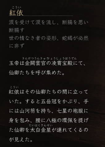 从装备概念、生僻词语到晦涩的诗句,这一注音系统出现在游戏的各个角落,对于放入这项设计的目的,戚煜表示:“我们使用了很多非日本人常用的专有名词,对于日本玩家来说比较陌生,这就需要给他们一个认识的机会,所以我们考虑加注音,让他们能够读懂。”