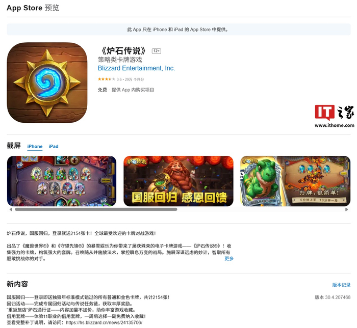 IT之家 9 月 25 日消息,《炉石传说》国服今日回归,目前 iOS 版《炉石传说》已开放下载(搜索时需要带书名号可更快速搜索到)。