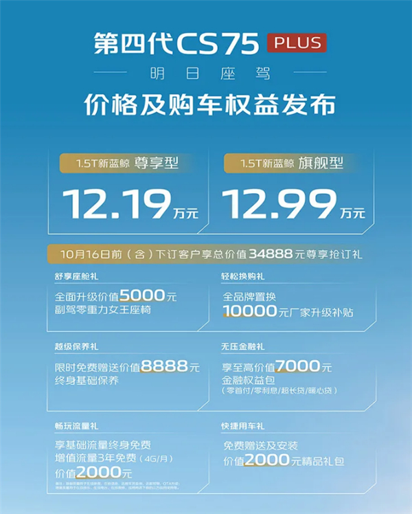 快科技9月25日消息,昨晚,全新长安CS75 PLUS正式上市,共推出2款车型,售价区间为12.19-12.99万元,此次只提供1.5T版,2.0T车型将于12月正式上市。