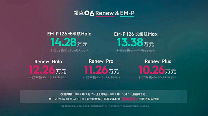 新款领克 06 Renew / EM-P 上市:1.5T 燃油 / 1.5 升插混,10.86 万元起