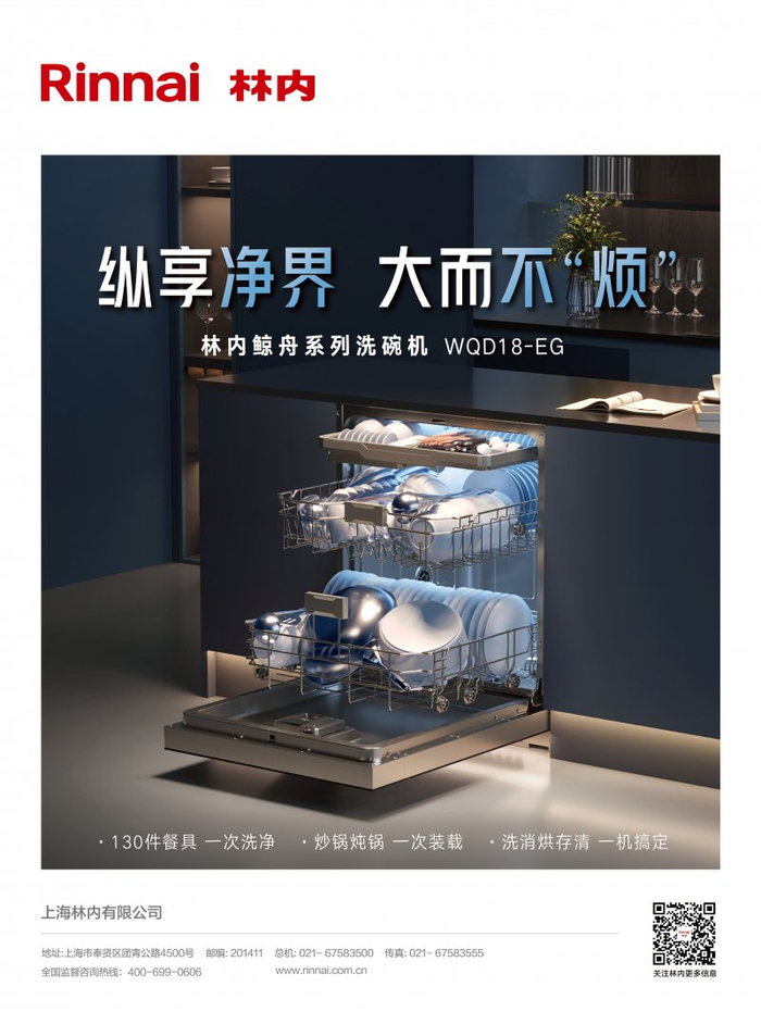 林内“鲸舟系列18套嵌入式洗碗机”,拥有一次洗净130件餐具的庞大空间,即使是大体积的炒锅、汤锅都能轻松洗净,真正解放双手;独立分层的设计,可实现一餐一洗,节能更高效;触控屏图文并茂,洗涤程序自动报备,点触即达易上手,父母也能一学就会。此外,高温除菌和UV紫外线杀菌等消杀技术,有效抑制返潮生菌,宝宝餐具、奶瓶都可放心消杀,真正呵护家人健康。