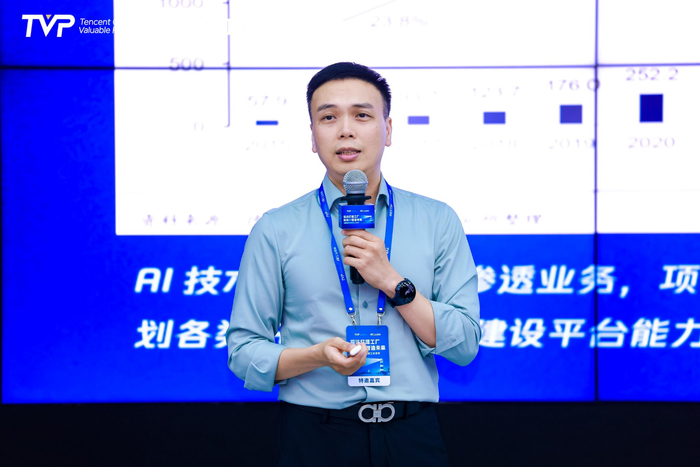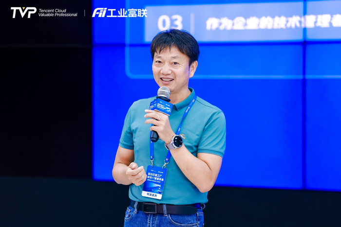 腾讯专有云总经理 孙其琛以《腾讯专有云加速 Fii 构筑数智化应用新底座》为主题,阐述了腾讯专有云 TCE 在工业智能化和数字化转型中的应用,深入分享了在与工业富联的合作中的云边协同实践。