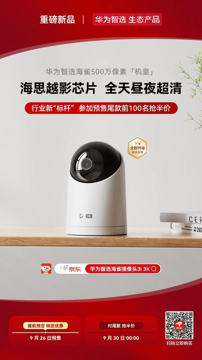 发起配置革命!华为智选海雀摄像头3i 3K版,海思芯片+机身内存,仅199元