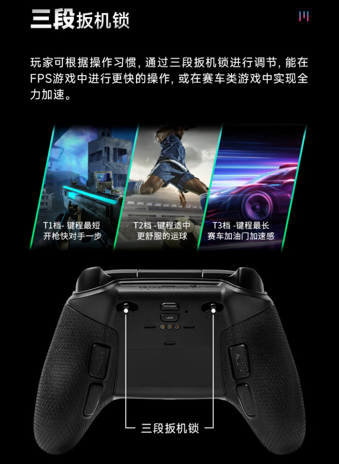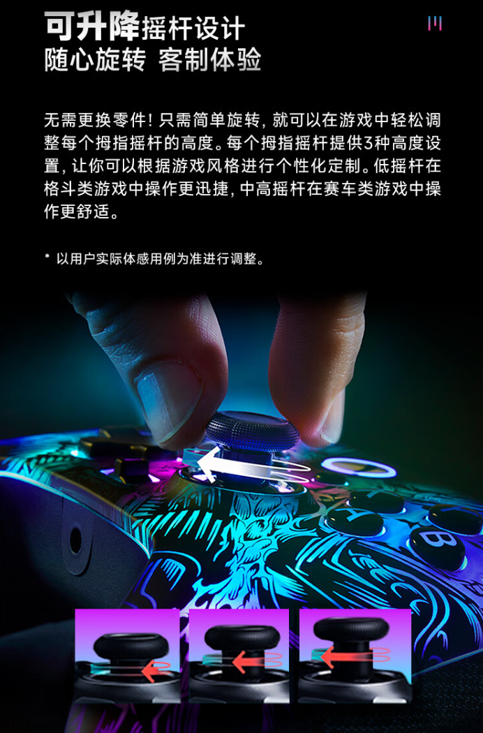 该款手柄还配备可升降霍尔摇杆,用户通过拇指即可旋转调整摇杆高度(3 种档位),适配格斗、赛车类游戏。另外,PowerA Fusion Pro 还内置双震动马达,配备 3.5mm 耳机插孔,拥有一键式麦克风静音功能。