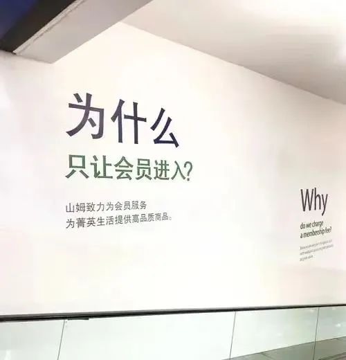 山姆在中国依然秉承着这个原则,每次通过会员资格检查进入超市后,就会看到墙上醒目的标语。“菁英”二字尤为瞩目,不管自己是不是菁英,在通过那道仪式感的身份检查后,就已经被山姆认定为了“菁英”。