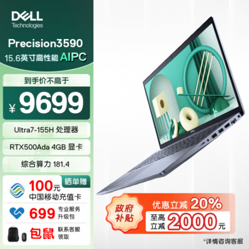 办公学习使用的笔记本需要换新,可以考虑戴尔Precision 3590 15.6英寸笔记本。轻约1.62kg起,薄至2.1cm,采用碳纤维+可再生环保复合材质,轻薄且耐用。Dell Precision Optimizer能自动调整系统设置、应用程序性能配置文件,提升创作软件的运行稳定性和系统性能,支持智能节电、智能网络连接、智能音频、智能生态系统、智能分析、快速响应,体验更上一层楼。戴尔Precision 3590 15.6英寸笔记本 Ultra7-155H 32G 1T RTX500Ada 4GB京东价9659元,享受上海家电以旧换新补贴额外立减1931.8元,最终到手价7727.2元。