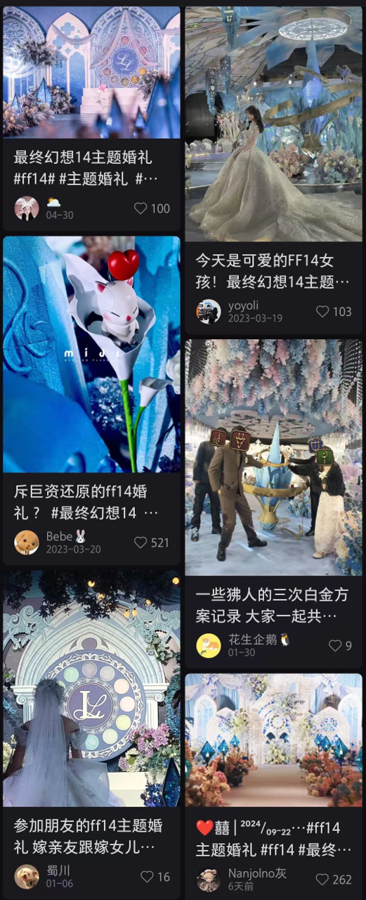 除了上面这些有官方参与主导的活动,FF14玩家也是我见过的在现实中举行主题婚礼最多的玩家群体,几乎是养起了一个产业垂类。
