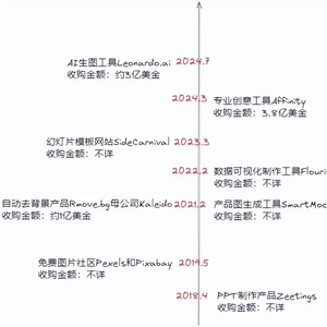 而 Canva 2018 年就收购的另一个 PPT 项目 Zeetings 在交易完成不久之后即被关闭,由于年代久远,笔者已经无法确认具体功能了。但从收购 Zeetings 的同一年 Canva 就上线 PPT 制作功能的情况来看,这笔收购的主要目的应该是功能扩充与整合。