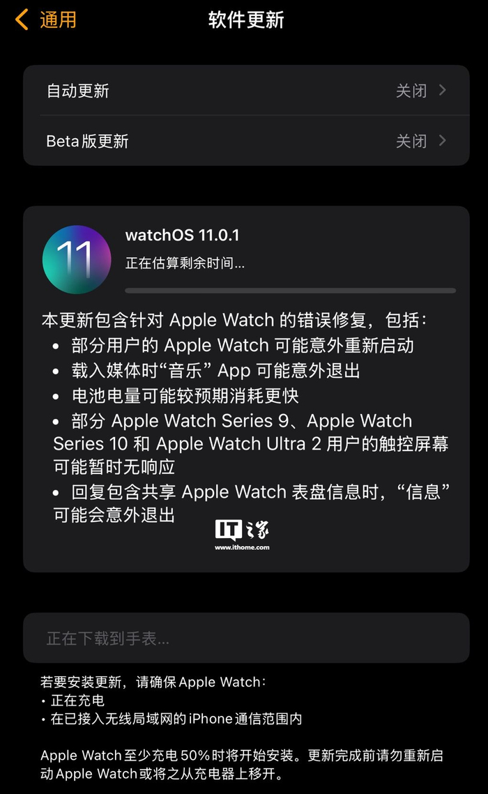 苹果 watchOS 11.0.1 发布:修复耗电异常、触控无响应等 BUG