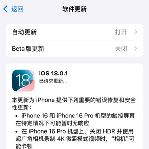 iOS 18.0.1更新解决了iPhone 16和iPhone 16 Pro机型在特定情况下触控屏幕暂时无响应的问题。