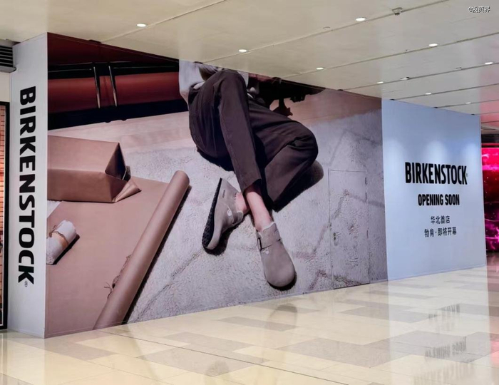最新一幕是,Birkenstock即将在北京国贸商城开出华北首店,目前已进行围挡。