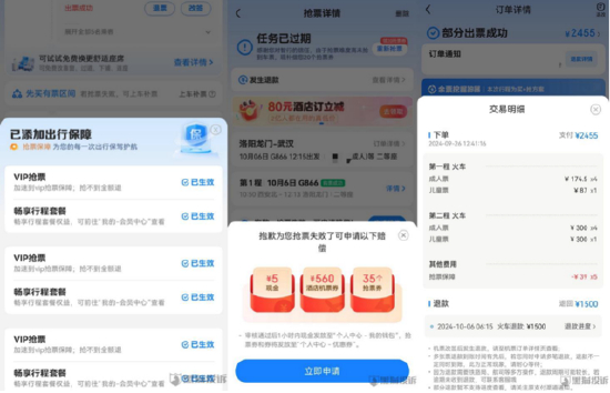 为了抢到从西安至武汉的火车票,一位消费者10月6日开始使用智行App分两程购票。