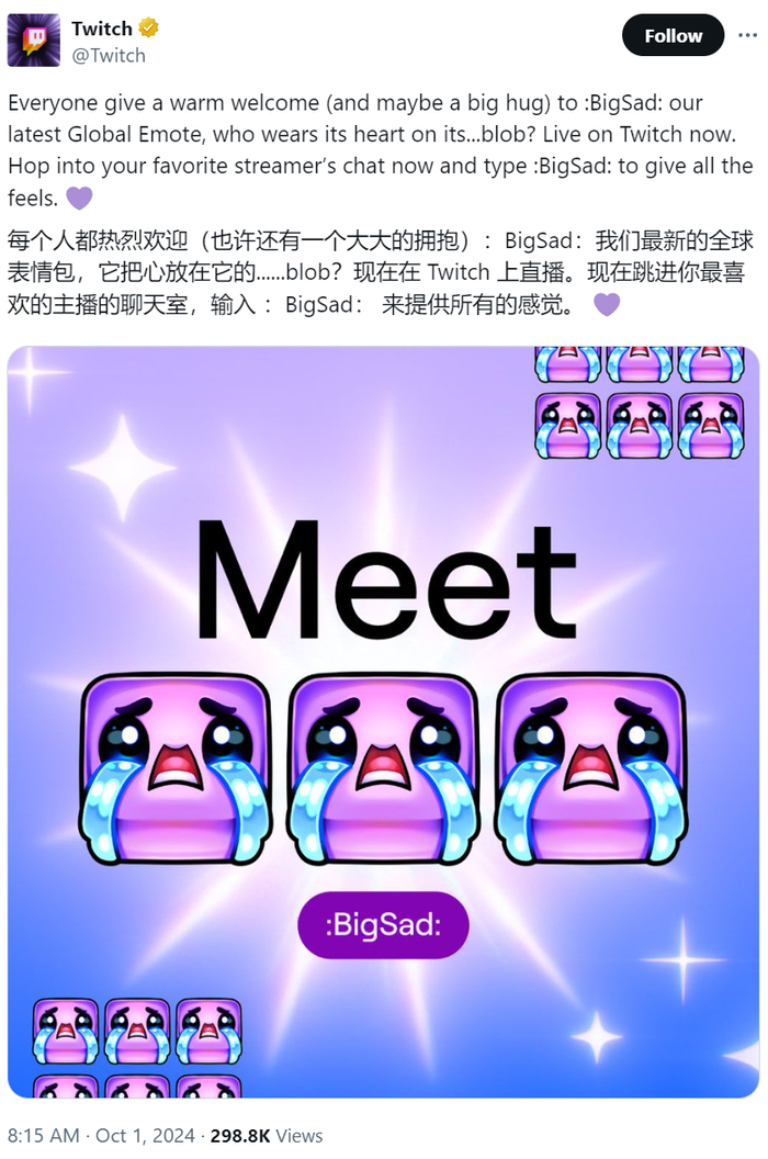 如今改动已经生效,BibleThump从热门表情里消失,换成AI味十足的BigSad。