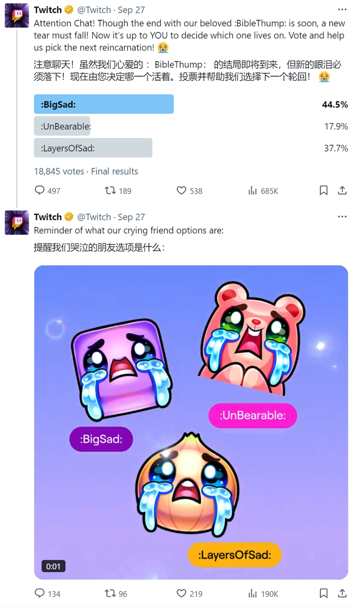 问题的关键在于,Twitch根本没找他谈授权续约,反而邀请其他艺术家制作了三个表情,让玩家投票选出一个BibleThump的替代品。