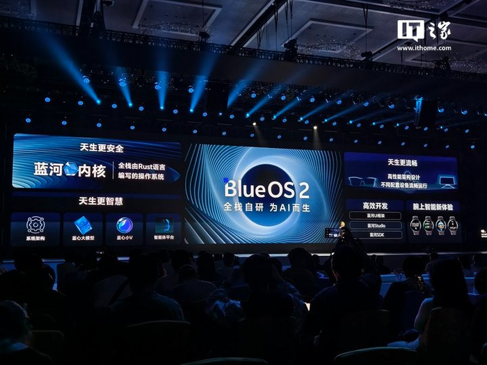 IT之家 10 月 10 日消息,在今日上午的 2024 vivo 开发者大会开幕演讲中,vivo 正式发布了蓝河操作系统 2,官方称该系统“全栈自研,为 AI 而生”,是“行业首个全栈由 Rust 语言编写”的操作系统。