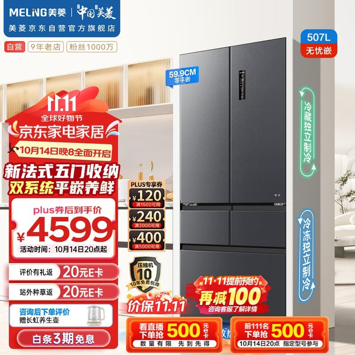 美菱一级能效双系统冰箱3535元