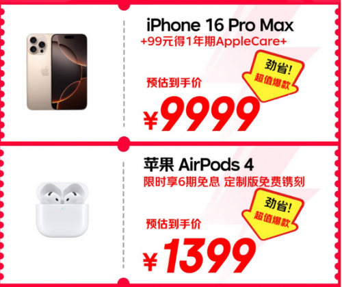 每年11.11都是广大果粉焕新Apple产品的绝佳时机。这个11.11京东也为果粉们带来了售价9999元的iPhone 16 Pro Max,在京东购买这款手机的消费者还有+99元得1年期AppleCare+服务的优惠可享。11.11期间,焕新iPhone的消费者也可同时入手AirPods 4耳机,可限时享6期免息福利。在京东焕新MacBookAir 13.6英寸则可叠加20%换新补贴,到手价低至7699元,十分划算。