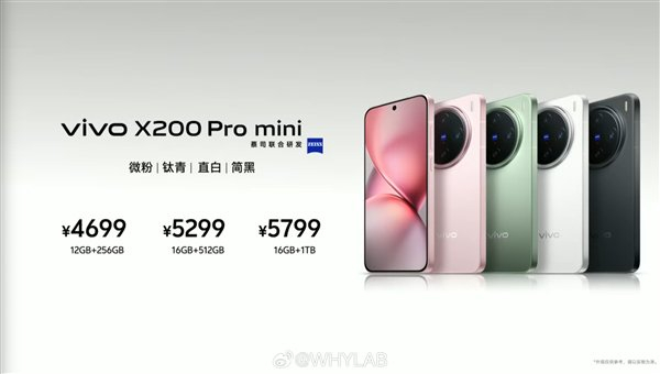 售价方面,vivo X200 Pro mini 12GB+256GB售价4699元、16GB+512GB售价5299元、16GB+1TB售价5799元,提供直白、简黑、钛青、微粉4款配色。
