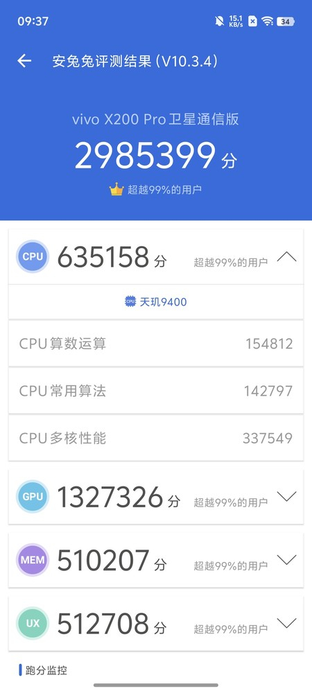 vivoX200Pro跑分达到2985399分