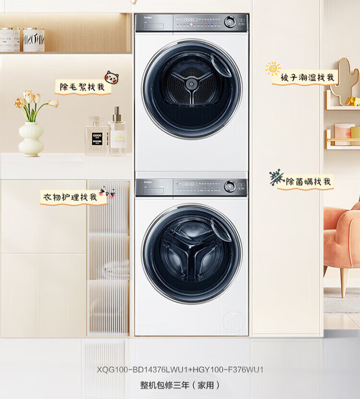 还得是双 11:海尔云溪 376W 热泵洗烘套装 4811 元再破价
