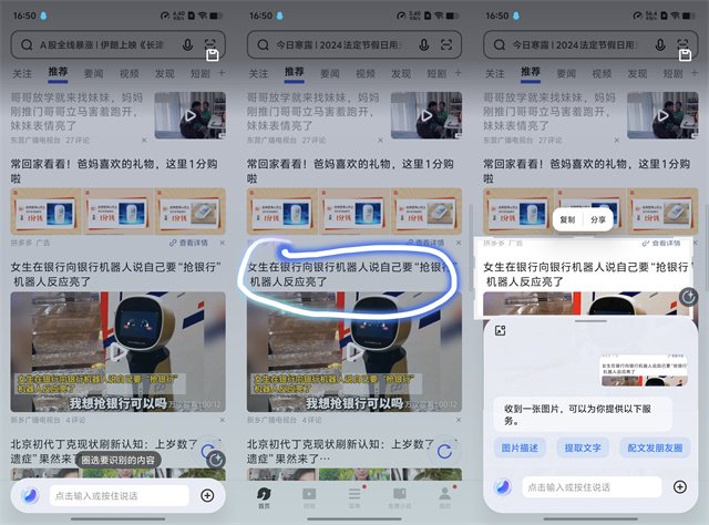 另外就是小V圈搜,全局都能用,长按导航条或者导航键都能启动,想要搜什么就圈中什么,提取或者总结、生成文字,图片内容搜索或者改变重绘,玩法十分多样。并且未来在PhoneGPT的加持下,vivo OriginOS 5能够提供不需要第三方App提供接口的学习操作,直接在前台模拟人来代替用户对手机操作,这也是AI智能体未来的发展方向之一,让OriginOS 5在AI智能体方面走在了前列。