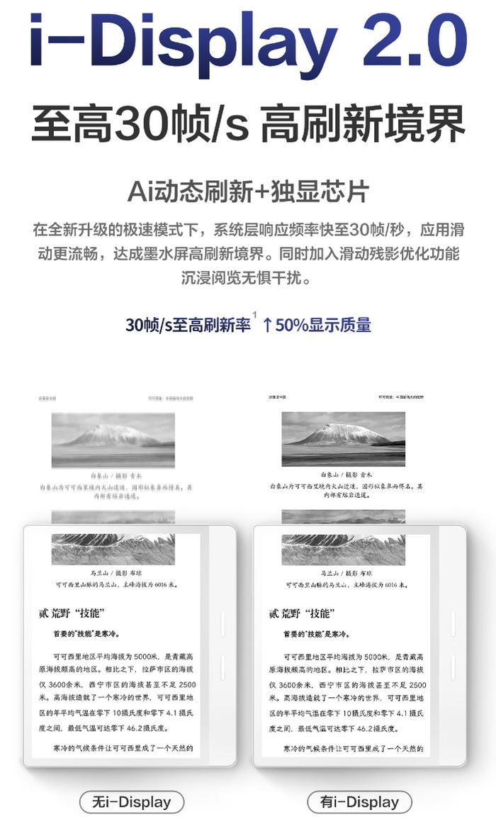 iReader Ocean 4 Turbo“北极白”配色还预装 SmartOS 2.3 系统,搭载自研 GPU Turbo 性能优化引擎,支持底层芯片计算资源合理调度,系统运行速度、操作流畅度提升。该机还支持 i-Display 2.0 独显快刷,拥有 30 帧 / s 快刷。